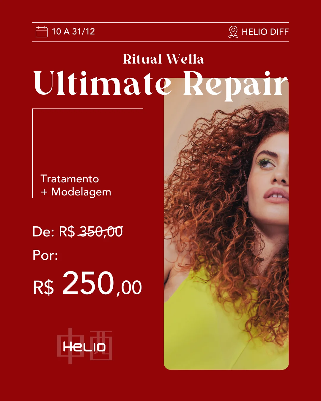 O que você realiza em apenas 90 segundos? O Ritual Ultimate Repair, da Wella Professionals by Helio Diff, restaura danos, reduzindo a quebra dos fios em 99% e proporcionando um brilho extraordinário!